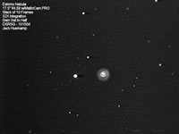 All the images below were produced from video recorded on the night of October 15, 2004 at the Deep South Regional Stargaze. A 17.5" f/4.58 AstroSystems TeleKit with ServoCAT drive system and MallinCam PRO Video CCD Oberservational System were employed to both view all these objects "live"on the screen of a 7" portable DVD player and to record the camera's output onto Hi-8 videotape using a Sony camcorder. The Hi-8 videotapes were copied to DVD, and the DVD segments for each object were converted to AVI files. The AVI files were reduced in size by deleting duplicate frames, and the "decimated" AVI files were processed using RegiStax to produce the images in the album.