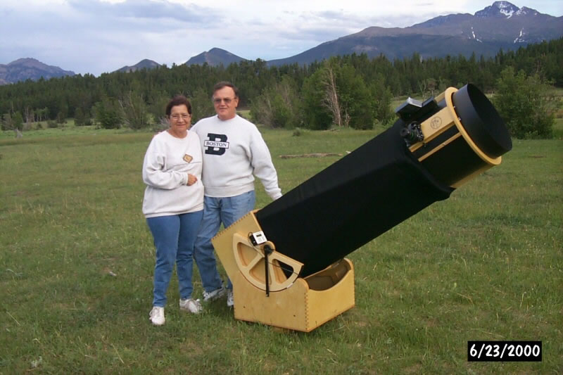 Previous | Home | NextIn June of 2002, my wife, Jacqueline, and I had a chance to visit with Randy and Alan of AstroSystems. They let us know that there was a public stargaze in Rocky Mountain National Park for the Friday before we returned to Louisiana. We met Randy and Alan in the park and observed with them through Alan's 16" TeleKit seen in this photo. Long's Peak at 14, 255' is to the upper/right in the picture. |